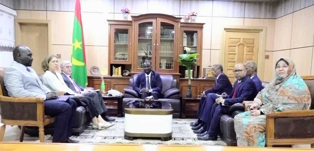 حضر اللقاء إلى جانب معالي الوزير؛ الأمين العام للوزارة السيد: محمد أحمد عيده، والمستشار المكلف بالتعاون والتقييم والمتابعة السيد: أعمر القاسم، والمستشارة المكلفة بالنفاذ إلى العدلة وبالاتصال السيدة: منت أحميد بنت التكرور، والمستشار المكلف بالحماية القضائية للطفل وبالنوع السيد: جالو آبو مودي٬ ومدير التعاون والتعاون القضائي البيني السيد:الحسين الشيخ كبادي.